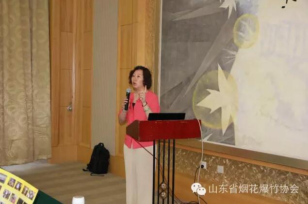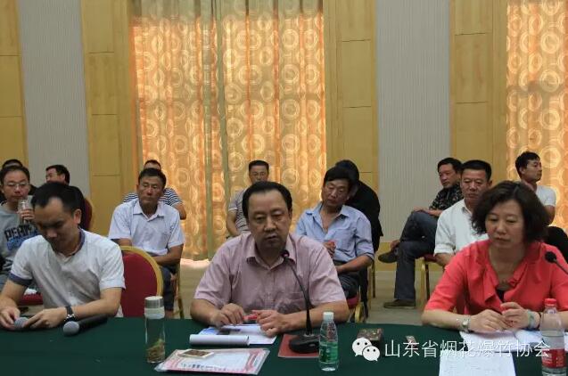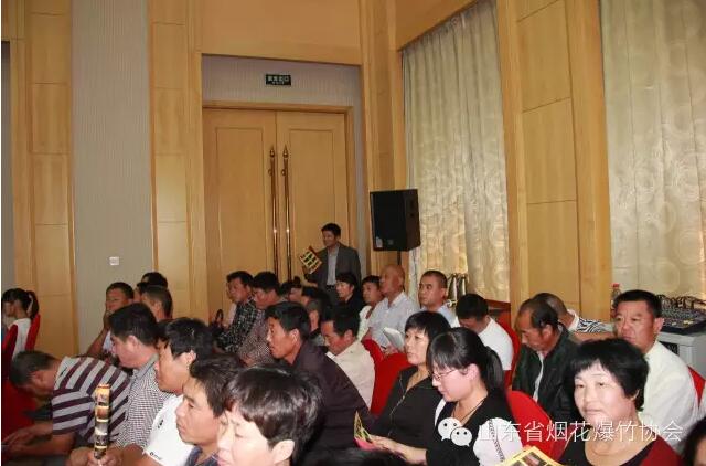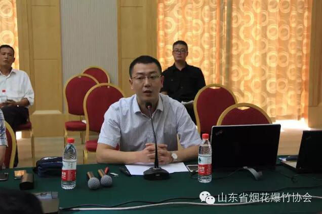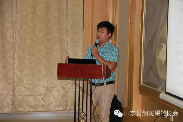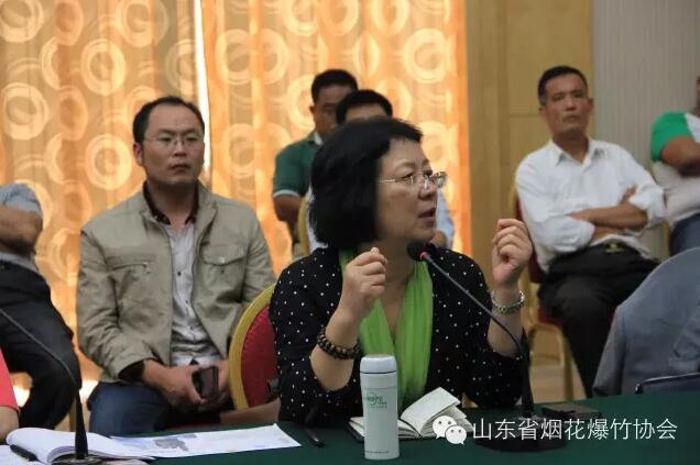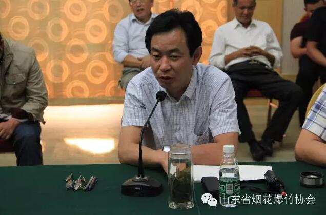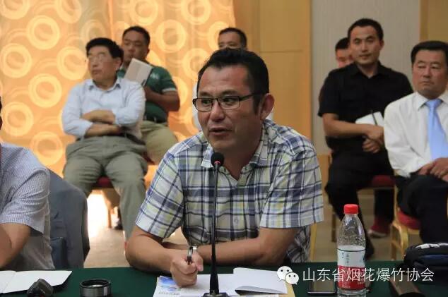 (協(xié)會副會長、日照市匯鑫煙花爆竹有限公司總經(jīng)理劉寶介紹經(jīng)營玉蟬酒的經(jīng)驗)